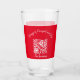 Herrliche rot-weiße Designbrille, die die Dinge des Komforts und der Freude verkündet. Fügt Feiertagjubiläum zu jedem Tisch hinzu. Fügen Sie Ihren Familiennamen zu personalisieren.