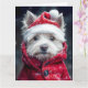 Cet adorable West Highland White Terrier est prêt pour les vacances! Habillé d'un chapeau de Père Noël et d'un manteau rouge d'hiver, ce petit chiot saisit parfaitement l'esprit festif. Avec la neige qui dépoussière doucement sa fourrure et son manteau, ce moment merveilleux d'hiver est plein de chaleur et de charme. Les yeux expressifs du Westie et le nez du bouton ajoutent une couche supplémentaire de gentillesse à cette scène de vacances.