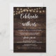 Schönes modernes, dunkles Holz, Saitenleuchten, Hütte Thema, Hochzeitsankündigung, Einladungskarte (Feiern mit uns). Dies ist ideal für Ihren Hochzeitsempfang und Ihr Party nach der Hochzeit. Fügen Sie Ihre Daten in passender Schriftart / Schrift hinzu. #TeeshaDerrick