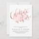 Moderne Einladungen mit Handschrift "feiern mit uns" Skript in Imitaten Rose goldene Folie auf rot rosa Aquarell Hintergrund, passen Sie es mit Ihrem Party Details, elegant und stilvoll. Ideal für Verlobungsfeier, Hochzeitsfeier, Party für die Verlängerung der Gelübde und alle Feierlichkeiten. Sehen Sie sich alle passenden Stücke in der Sammlung an.