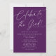 Einfache Einladungen der Graduiertengruppe mit dem Titel "Celebrate the Grad!", die in einem lila Schriftzeichen mit weißer Kalligraphie dargestellt sind. Personalisieren Sie die lila Abschlussfeier lädt mit dem Namen des Absolventen, Schulname, Abschluss Jahr und Party Details. Das moderne Party lädt zu einem soliden lila Hintergrund mit Platz für zusätzliche Texte oder Fotos. Die Einladungen eignen sich sowohl für Absolventen der Highschool als auch für Absolventen der Uni!