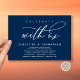 Mit unserer modernen marineblauen Themendesign (Feiern Sie mit uns) Hochzeitsfeier Einladungskarte verkünden und teilen Sie Ihr Glück immer wieder im Stil. Es ist ideal für Paare, die sich entschieden haben, ihren besten Tag zu feiern. Mit seinem ausgeklügelten und spielerischen Design wird diese Einladung den Ton für ein unvergessliches Ereignis Set. Die Einladungskarte bietet ein modernes und minimalistisches Design-Thema, das Ihren Feiern eine Touch zeitloser Eleganz verleiht. Designed by TeeshaDerrick