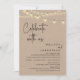 Moderne rustikale braune Kraft, mit Hütte-Saitenbeleuchtung thematisiert, Hochzeitseröffnungskarte (feiern Sie mit uns). Es ist perfekt für Ihren Hochzeitsfeier Empfang / Post Hochzeitsfeier Party.