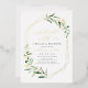 Feiern Sie mit uns! Moderne grüne Hochzeitsfeier mit rustikalem botanischem Blattdesign in Aquarellfarbe mit echten Goldfolien-Blätter und geometrischem Rahmen, einfach und elegant, ideal für rustikale Hochzeiten im Sommer, botanische Gartenhochzeit im Frühling. Alle passenden Teile in der Sammlung anzeigen