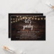 Feiern wir Party, Hochzeitsfeier Ankündigung / Einladungskarte, in rustikalem Bauernhof Holz, String Lights Design. Dies ist ideal für Ihren Hochzeitsempfang und Ihr Party nach der Hochzeit. Fügen Sie Ihre Daten in passender Schriftart / Schrift hinzu. #TeeshaDerrick