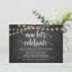 Feiern wir jetzt, Hochzeitsfeier Ankündigung / Einladungskarte, in rustikaler Farm Chalkboard, String Lights Design. Dies ist ideal für Ihren Hochzeitsempfang und Ihr Party nach der Hochzeit. Fügen Sie Ihre Daten in passender Schriftart / Schrift hinzu. #TeeshaDerrick