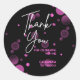 Ein moderner, stilvoller und glamouröser Dankeschön-Aufkleber. Dieses Design zeichnet sich durch eine lebendige Typografie "Danke" mit rosa Farbverlauf auf schwarzem Hintergrund aus. Personalisieren Sie es mit Ihrem Text.