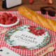 Holiday Party Modernes Corporate Weihnachts-Party Papier Teller bietet ein schicke Urlaubsdesign von Aquarell-Rot und Weiß Poinsettia Blume, heilig und mistletos in festlich rot, weiß und grün auf einem weißen Hintergrund. Der Text "Happy Holidays" ist in Kalligraphie-Schrift-Typografie geschrieben und mit Ihrem Firmennamen personalisiert. Ideal für Ihre Weihnachtsfeier. Bearbeiten Sie den Text einfach in den dafür vorgesehenen Textfeldern. Entworfen von ©Evco Holidays www.zazzle.com/store/evcoholidays