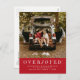 Senden Sie Ihre Urlaubsfreude und verkünden Sie Ihre Verlobung mit dieser Vertikalkarte mit einem Foto, die eine individuell anpassbare Nachricht auf der Rückseite enthält. "Überglücklich" - mit einem Schwerpunkt auf Freude - und alle Ihre Save the Date Details sind weiß auf einem festlichen Weihnachtsrot, aber die Farbe kann durch Klicken auf "Anpassen" geändert werden.