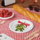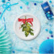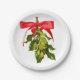 rotes Band auf grünem Mistelzweig für Weihnachtsgeist