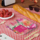 Rosa Magenta-Orangenbäuche elegante personalisierte Hochzeitsgeschirr Vorlagenpapier Teller, lebhafte, fette Farben moderne Typografie