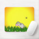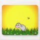 Niedliches kleines graues Cartoonschaf mit einem rosa Gesicht und googly Augen, die auf einem Gebiet der Blumen an einem sonnigen Tag, als große, goofy schauende Biene stehend sind, fliegt vorbei. Großes Geschenk für selbst oder den Schafliebhaber in Ihrem Leben. Ursprüngliche digitale Cartoonkunst durch Taylor Addams. Mutterschaf, das zur Liebe es geht!