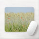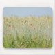 Feldrand eines Maisfeldes mit blauen Maisblumen und roten Mohn