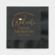 Ajoutez une touche personnalisée élégante à une fête de fin d'études à l'université ou au lycée avec des serviettes personnalisées en papier feuilleté. Tout le texte sur ce modèle est simple à personnaliser. Le design en papier métallique en noir et or est composé d'un casquette en carton de mortier, d'une typographie classique et d'une calligraphie de script moderne. Ces serviettes uniques apportent une touche customisée élégante aux décorations de célébration. Félicitations au diplômé !
