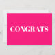 Félicitations, Félicitations, chaud rose fuchsia blanc moderne Note Card. Design élégant et moderne.