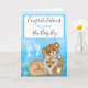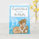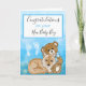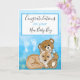 Félicitations à votre nouveau bébé garçon, créatures boisées à thème, renard et ours en peluche, carte bleue pour les nouveaux parents.