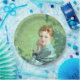 Dieses Design zeigt ein Gemälde des schottischen Künstlers George Henry (1858-1943), der eines der prominentesten Mitglieder der Glasgow School of Art war. Es ist ein Portrait einer schönen jungen Frau namens Felicity. Sie sitzt an einem Tisch und trägt ein türkisblau-blaues Kleid. Ihre Ellbogen ruhen auf dem Tisch und halten ihre Hände neben ihrem Gesicht fest. Die Felicity beginnt intensiv beim Betrachter. Sie ist eindeutig eine elegante Frau. Ihr kastanienbraunes Haar ist modern gestylt und trägt einen Schal über ihrem Kleid, das ein etwas dunklerer türkisfarbener ist als das Kleid selbst. Im Hintergrund ist die Vegetation, was darauf hindeutet, dass sie draußen in einem Garten sitzt. Das Originalwerk wurde 1916 von George Henry gemalt.