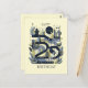 Colores suaves, verde, azul y crema. Los dibujos son elementos que forman una composición con el número 20, rodeado de estrellas , hojas y pequeñas flores, con un estilo moderno.