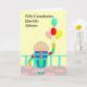 Para Sobrino Felicitacion de Cumpleaños en español, La Roboter sobre balcon fondo Amarillo-Betrugglobos de Colores en mano - zum Neffegeburtstagsgruß auf spanisch, Balkon Roboter auf gelbem Hintergrund mit bunten Ballonen in der Hand