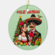 Mexikanische Lady und mexikanischer Mann mit Weihnachtsbaum und Geschenke und Text Feliz Navidad Art Illustration Keramik Ornament