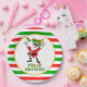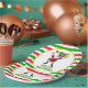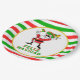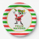 Auf dieser lustigen Urlaubspapierplatte befindet sich der Cartoon Santa Claus im festlichen mexikanischen Sombrero und das Textbild "Feliz Navidad" in rot, grün und gelb auf einem rot, weiß und grün gestreiften Hintergrund. Ideal für Ihre Feierlichkeiten.