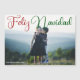 Schöne Feliz Navidad Foto Magnetkarte mit wunderschöner Kalligraphie in Rot und Grün. Diese moderne spanische Weihnachts-Fotomagneten-Karte verfügt über ein prächtiges Drehbuch und Ihren Namen in Weiß über das komplette Blutbild.