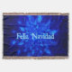 Ein Schwarm blauen Fraktals Schneeflocken. Der spanische Text "Feliz Navidad" erscheint in blau-weiß.