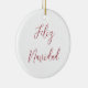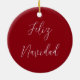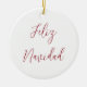 Feliz Navidad Keramik-Ornament mit eleganter Schriftzypografie auf einem reversiblen, weißen und roten Hintergrund. Mit rot-weiß Buchstaben können Sie Ihre eigene Nachricht anpassen. Dieser schöne Weihnachtsschmuck ist ein tolles Geschenk für Ihre spanischsprachigen Lieben!