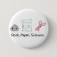 Niedlicher Felsen, Papier, scissors Charaktere auf einem Knopf-Button.