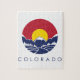Dieses felsiger GebirgsStaats-FlaggenAusrüstungsbeschreibungen Colorados die Colorado-Staats-Flaggen-Farben, das Blau, das Rot, das Weiß und das Gold. Die Art der iconic Flagge des Staat emulierend, stellt dieser einzigartige Entwurf ein friedliches Baum-gesäumtes Tal im Blau dar. Eine goldene Sonne beleuchtet die majestätischen blauen Gebirgsspitzen, die durch einen rot-hued Sonnenaufgang-/Sonnenunterganghimmel gerahmt sind. Die sunlit Szene wird in einer mutigen, einfachen Colorado-Art mit dem Namen des Staat unten übertragen. Finden Sie diesen einzigartigen felsiger GebirgsStaats-Flaggenentwurf Colorados auf T - Shirts, Geschenken und Kleid.
