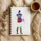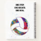 Dynamic watercolor-style illustration of a female volleyball player holding a ball, painted in vivid splashes of blue, pink, yellow, and red. This bold and inspiring sports design makes an energetic choice for note-taking, journaling, or planning — perfect for volleyball lovers and athletes.