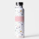 Personalized Elegant Wildflower Monogram Water Bottle. Add a soft, colorful touch to your daily routine with this elegant design featuring a delicate wildflower pattern in pastel shades of pink, purple, blue, yellow, and green on a white background. A pink bar stretches across with a white and gray monogram displayed on two sides for a graceful, personalized accent. All colors can be changed to match your style. Perfect for weddings, housewarmings, birthdays, or everyday use, this floral water bottle brings a fresh, timeless look to any setting.