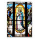 Fenêtre en verre teinté dépeignant Vierge Marie entourée par des anges et des saints, dans l'église collégiale du saint Sylvain, Levroux, France.