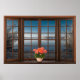 Fenstertäuschung mit Blume auf der See Poster
