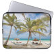 Tropischer Strandferienbestimmungsort mit Hängematten, Strandstühlen und Palmen in Tulum, Mexiko.