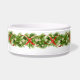 Diese große Haustierschüssel wird mit einem festlichen Urlaubstext aus Garland in Tanne und Mistleton mit roten Bändern gezeigt. Passen Sie dieses Objekt an oder kaufen Sie, wie es ist.