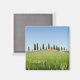 Aimant souvenir avec une ferme avec cyprès et brassant des grains de blé au printemps dans la vallée du Val d’Orcia en Toscane, Italie et le texte : 'Toscane, Italie'.