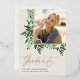 Élégant faire-part de graduation photo, avec une photo carré agrémentée d'un feuillage vert aquarelle et de fleurs blanches, et parée de feuille d'or. "Graduate" apparaît ci-dessous, ainsi que le nom de votre diplômé et l'école ou le collège. Ajoutez un message personnel à l'arrière, ainsi qu'une photo supplémentaire.