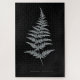 Zeichnend. Gymnogramma Chrysophylla. Schwarz-Weiß-19. Jahrhundert botanische Abbildung eines Farns mit türkisblauen Akzenten. Röntgeneffekt. Schwarzer Hintergrund und weiße Kontur oder Kontur. Negative invertierte Farben.