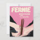 Fernie British Columbia Ski Poster in einem schönen Retro oder Vintagen, lebhaften rosa Stil.