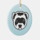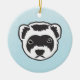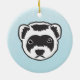 Ein glänzendes Gesicht in Schwarz/Weiß vor einem hellblauen Hintergrund.