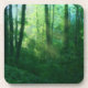 Morgensonne strömt in einen wunderschön grünen Sommerhwald mit massiven Efeu-Bäumen und einer dicken Unterbürstendecke. Ein digital manipuliertes Foto verleiht übergewachsenen Reben, blaugrünem Nebel, goldenen Rochen und Frühlingsgrün eine traumhafte Qualität verlassend.