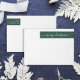 Diese modernen und stilvollen Rücksendeadresse-Wrap-around-Etiketten für Weihnachten mit den Worten "Frohe Weihnachten" in elegantem, weißem Schrift und Text auf festlich grünem Hintergrund.