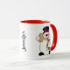 Ajoutez une touche de Whimsy et de Fun à vos matins avec cette adorable Mug Snowman ! Cette Charming Christmas Mug présente un bonhomme de neige qui est trop mignon! Il tient un Père Noël Mug plein à flot avec de la crème fouettée. Il tient aussi un biscuit Homme en pain d'épices. Vous pouvez facilement personnaliser cette Mug Snowman en ajoutant votre propre nom! Personnalisez cette Mug Festive de Noël à votre coeur contenu!