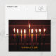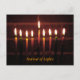 Diese Postkarte feiert das Festival der Lichter, auch bekannt als Hanukkah, Chanukah, Chanukkka, Chanuka, oder das Fest der Dedication. Es ist ein achttägiger jüdischer Feiertag, an dem Judas Maccabee zur Zeit der Maccabean-Revolte die Umwidmung des Heiligen Tempels (des zweiten Tempels) in Jerusalem gedenken hat. Das Festival wird durch das Entzünden der Kerzen eines einzigartigen Kronleuchters beobachtet, die neun verzweigten Menorah oder Hanukiah, eine zusätzliche Kerze an jeder Nacht des Urlaubs, und fortschreitet auf acht am letzten Abend. Das zusätzliche Licht wird als Shamash bezeichnet, dessen Zweck es ist, ein Licht zur Verfügung zu haben, da die Benutzung der Hanukkah selbst verboten ist.