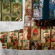 Feierliche und farbenfrohe Weihnachtskollektion mit Weihnachtskarten aus der Viktorianischen Zeit, wie Santa, Engel, Sterne, saisonale Blume und fröhliche Grüße auf dunkelrubinrot, dunkelolivgrün und tiefblauem Hintergrund.