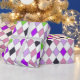 Fun Retro Diamant nahtlose Muster in lila, rosa, grün mit Imitaten silber Glitzer Rand auf weißem Hintergrund, für die Herbstfestlichkeiten Oktober / November, Weihnachtsgeschenk Verpackung, Geburtstag, Babydusche oder andere Gelegenheiten.