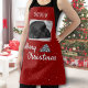 Fest Red Hund Haustier Weihnachtsbaum Name Foto Schürze. Holiday Design in roter Farbe mit einem Weihnachtsbaum, weißen Schneeflocken und fröhlichen Weihnachten in trendiger Schrift. Legen Sie Ihr Foto ein und personalisieren Sie es mit dem Namen Ihres Hundes.