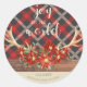 Ferienaufkleber | | Geschenkverpackungs-Aufkleber oder Umschlag-Aufkleber, Woodland Antler mit Spray von Poinsettias auf einem Lumberjack rot kariert mit alten Stallholzeinstau. Text anpassen. Alle Original Artwork © by WhimsicalArtwork™ Dies ist Teil eines Mix und Abstimmung koordinierte Holiday Collection.