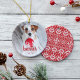 Geben Sie Ihrem Furry-Freund zu Weihnachten einen besonderen Platz auf dem Baum mit unserem festlichen Foto. Das Design zeigt Ihr Lieblingshund oder Foto mit dem Namen Ihres Haustieres, der sich in rot kalligraphischen Schriftzeichen überlagert. Personalisieren Sie sich mit dem Jahr unten. Der Ornament kehrt zurück, um festliche nordische Pullover-Muster in rot und weiß zu enthüllen.